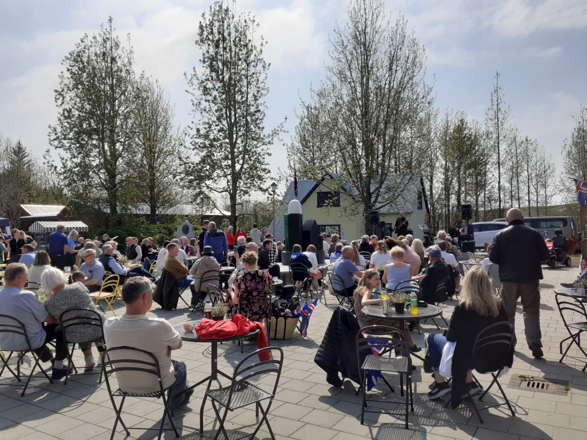 Að ræðuhöldum loknum var boðið upp á andlitsmálningu, hoppukastala og önnur útileikföng. Og að lokum spiluðu Maggi Kjartans og félagar nokkur lög í blíðunni.