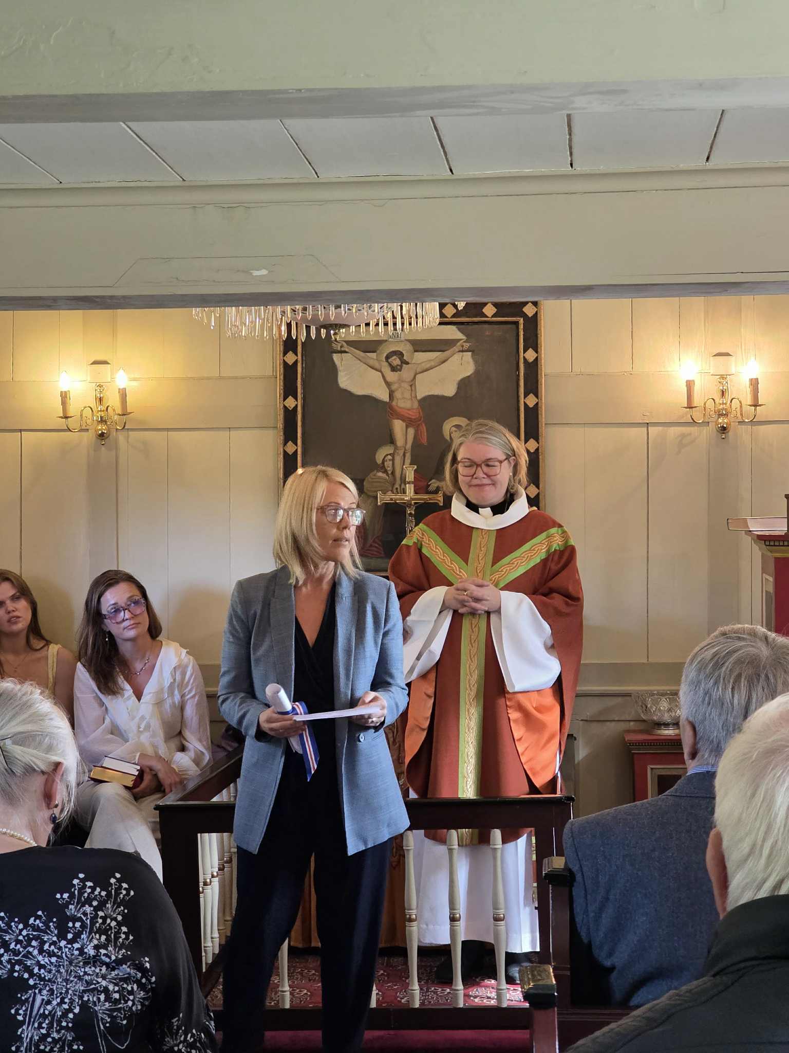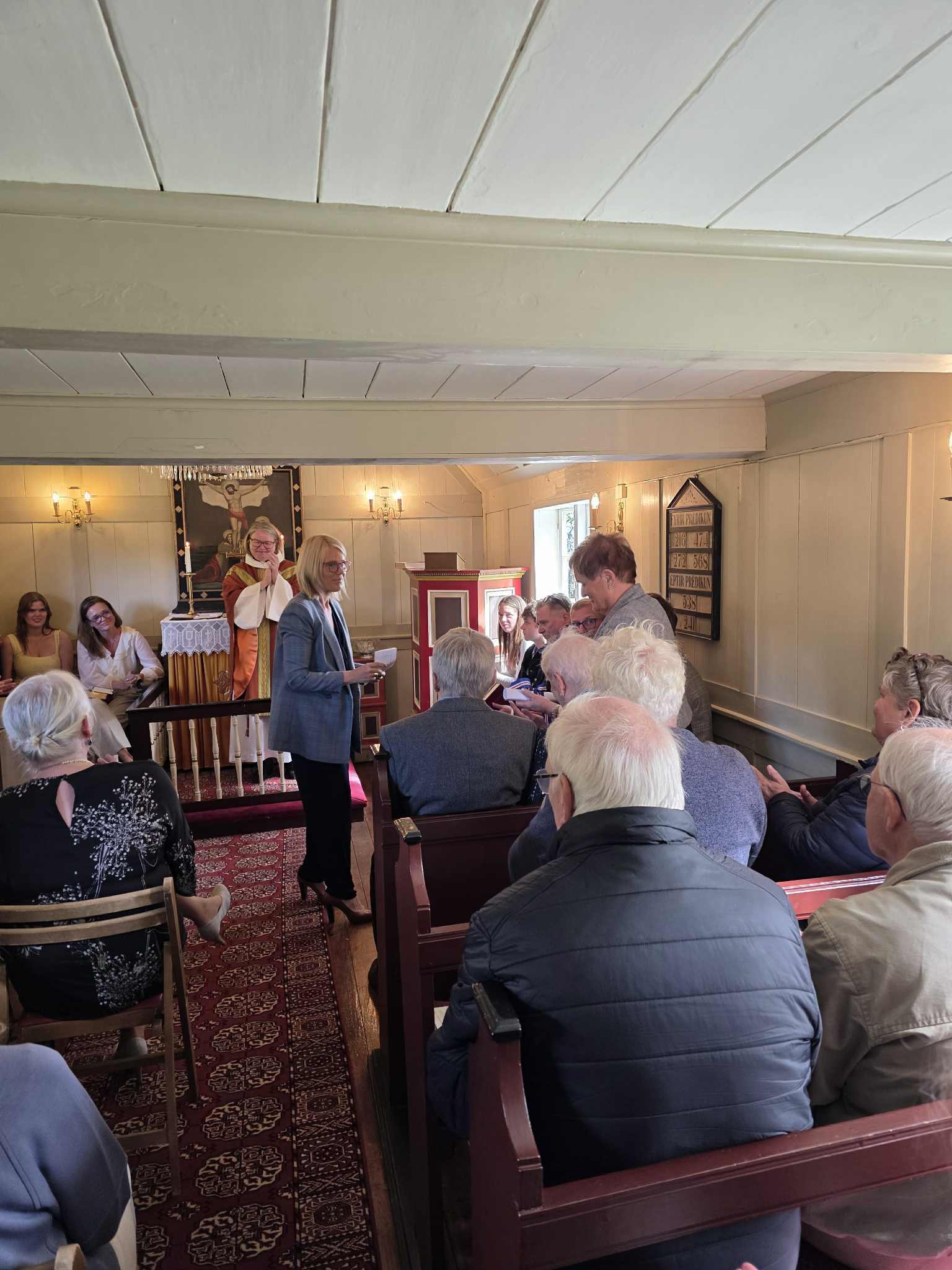 Sveitarstjóri Grímsnes- og Grafningshrepps, Fjóla Steindóra Kristinsdóttir, tók einnig til máls og færði kirkjunni veglega gjöf fyrir hönd sveitarstjórnar, garðbekk úr graníti, unninn af Steinsmiðju Akureyrar. Bekkurinn er tákn um styrk, festu og samveru, gildi sem kirkjan hefur staðið fyrir í gegnum tíðina. Með gjöfinni vill sveitastjórn styrkja kirkjuna sem stað þar sem áfram verður hægt að koma saman og njóta samverunnar og umhverfisins jafnt í sorg sem og í gleði.