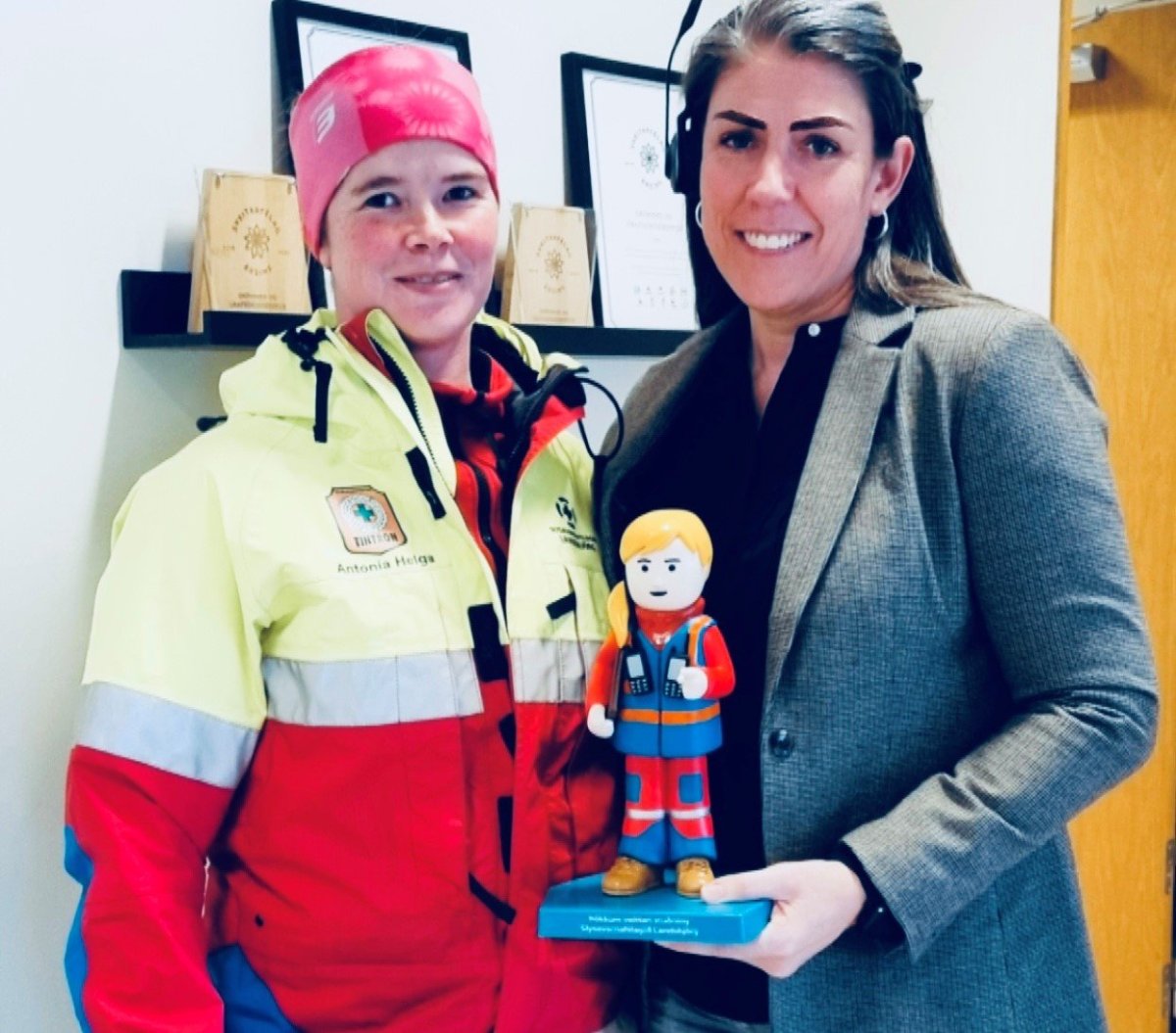 Iða Marsibil sveitarstjóri tók við Neyðarkallinum af Antoníu Helgu Guðmundsdóttur stjórnarkonu í sveitinni í dag.