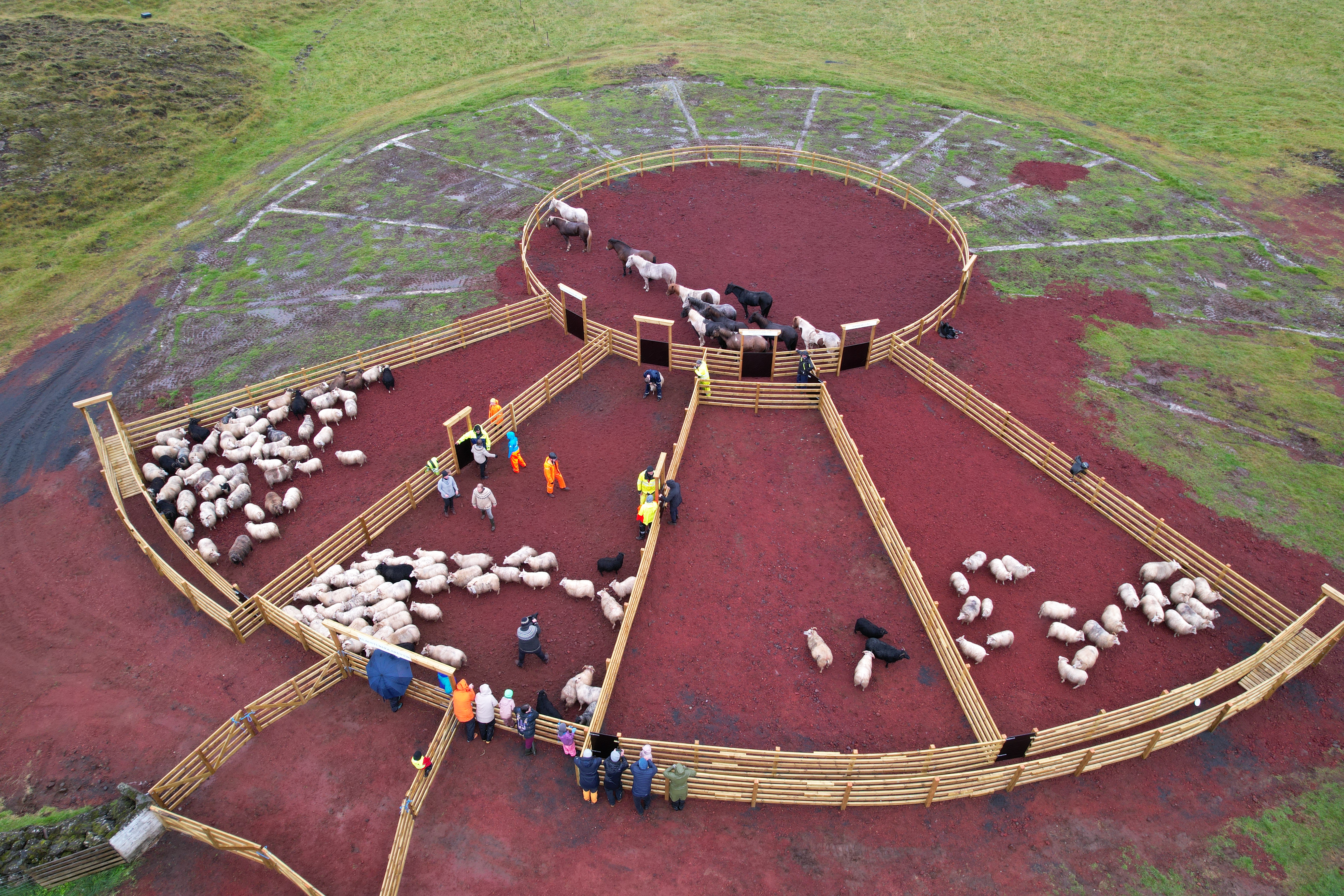 Hér að neðan má sjá drónamyndir sem teknar voru af réttunum.