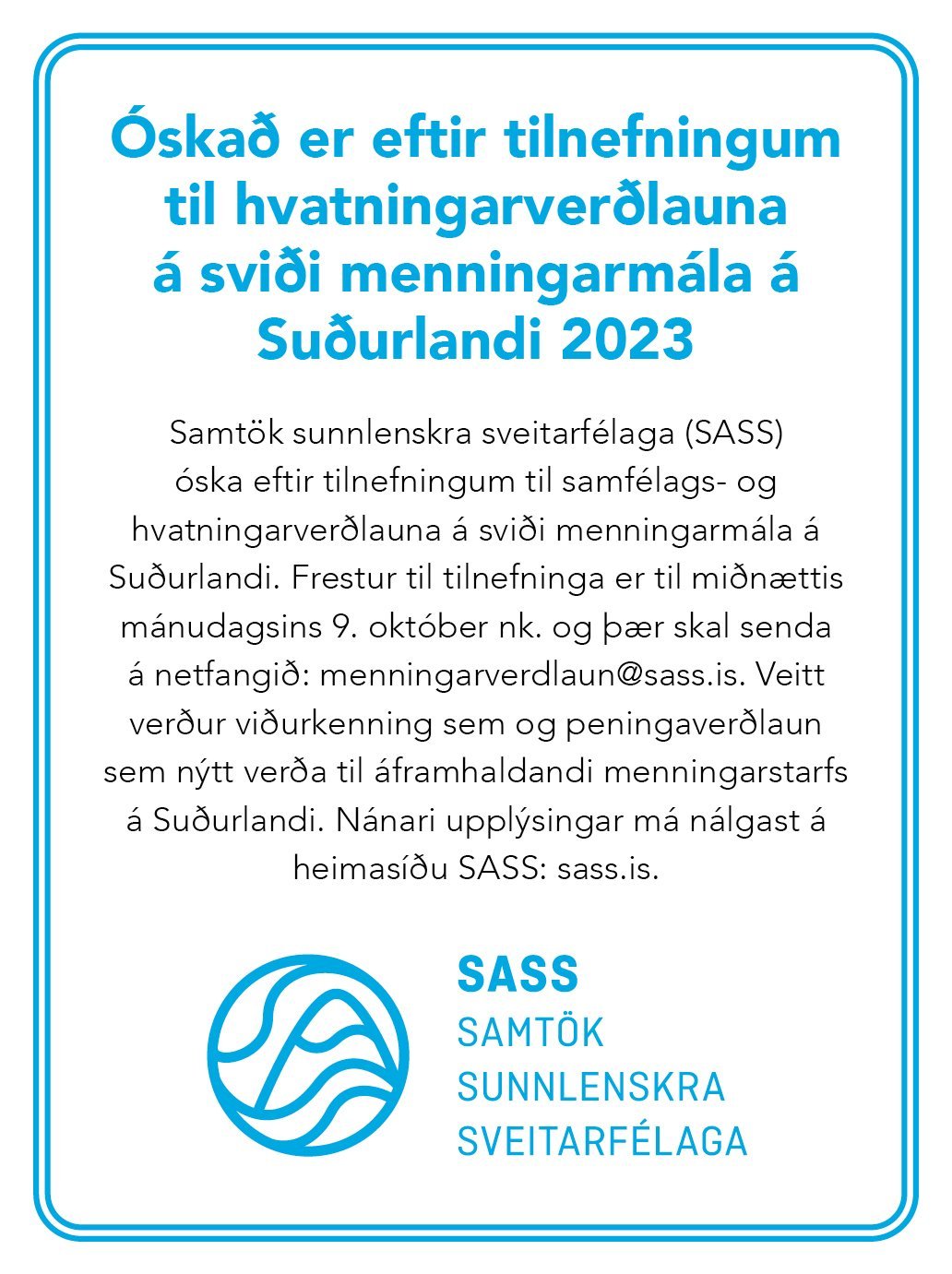 Óskað er eftir tilnefningum til hvatningarverðlauna á sviði menningarmála á Suðurlandi