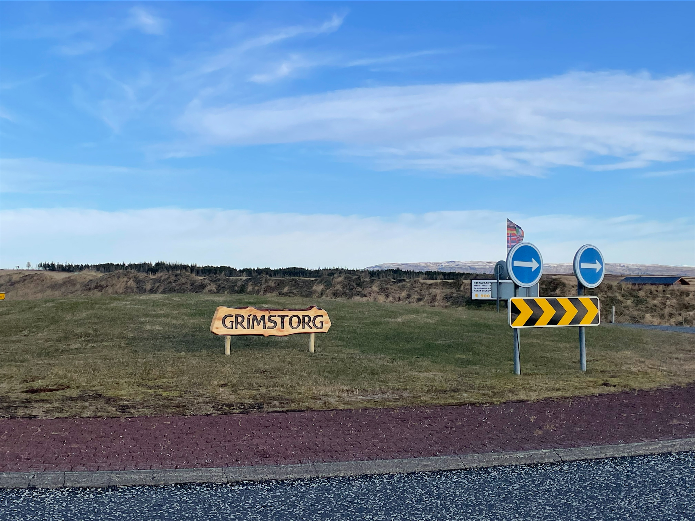 Skilti á Grímstorg