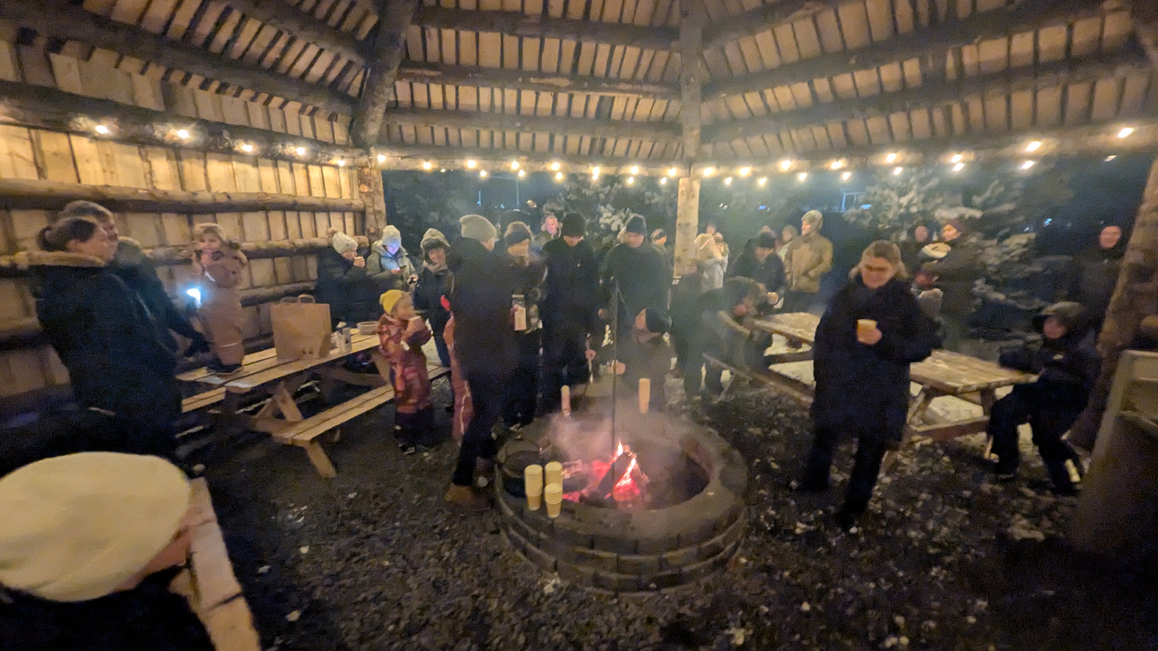 Á meðan gestir nutu göngunnar sá Guðmundur Finnbogason um að hita upp kakó og kaffi í bálhýsinu, þar sem samverustundin fór fram við varðeld. Bálhýsið, sem var reist með aðstoð smiðanna Eiríks Steinssonar og Þorkels Þorkelssonar, er glæsilegt mannvirki úr efni frá Snæfoksstöðum, sem Skógræktarfélag Árnesinga útvegaði.