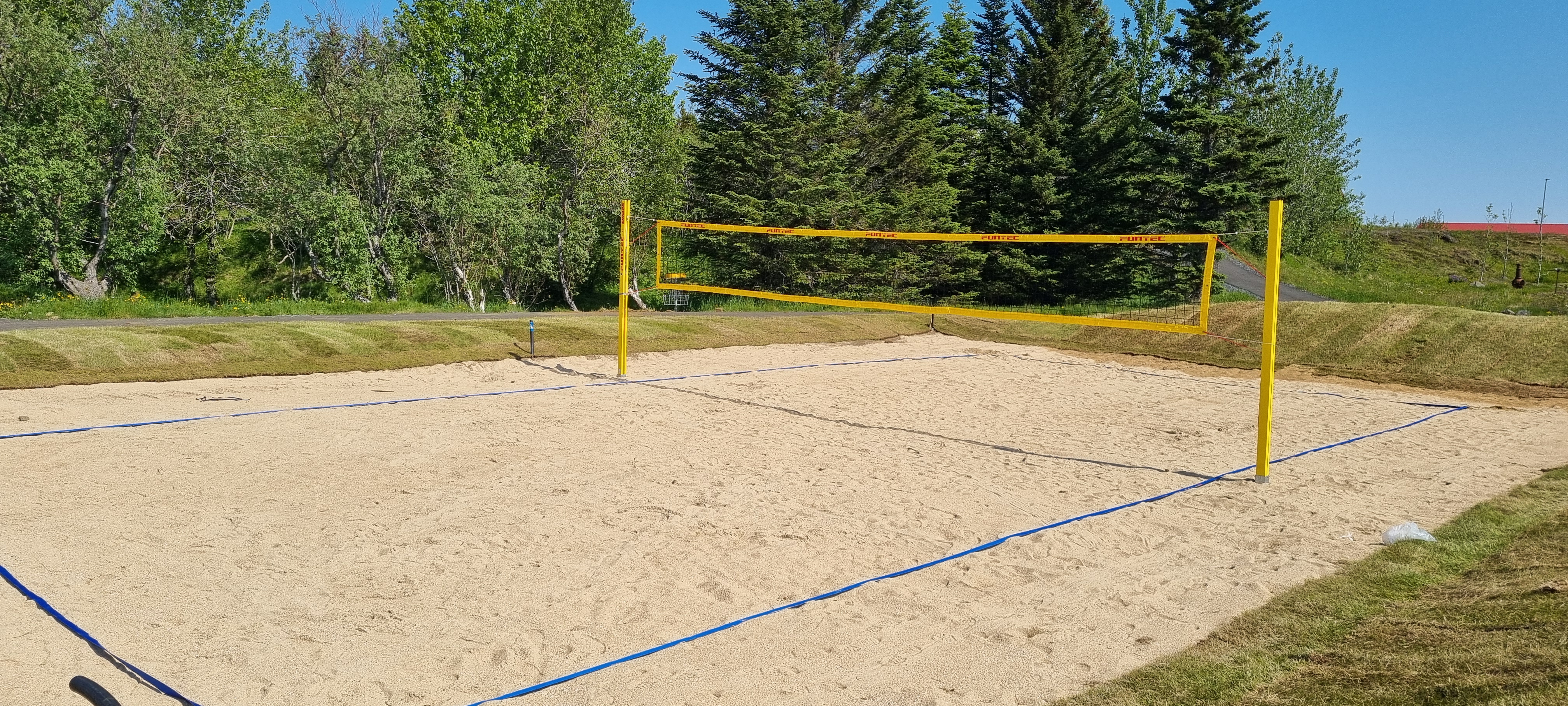 Strandblaksvöllur hefur verið settur upp á Borg og er öllum íbúum sveitarfélagsins, sem og gestum og gangandi, frjáls til afnota.