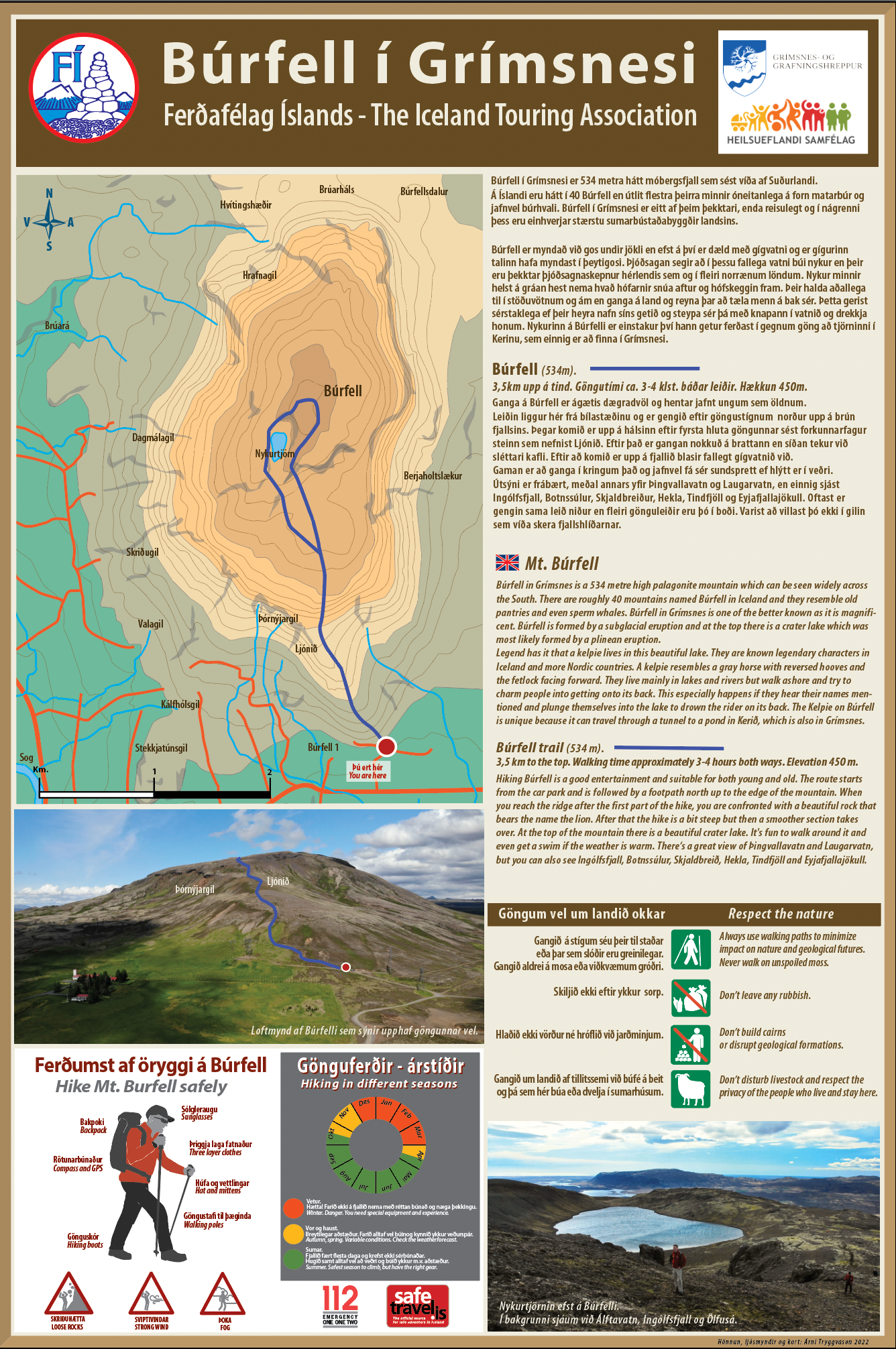 Þegar komið er að fjallinu ætti að leggja bílum á línuvegi sem er rétt austan við bæina á Búrfelli en ekki á bæjarhlaðinu.