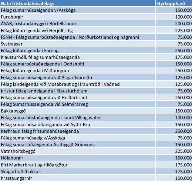 vegna veghalds í frístundabyggðum í Grímsnes- og Grafningshreppi. Framkvæmda- og veitunefnd leggur til að veittur verði styrkur til frístundahúsafélaga samkvæmt eftirfarandi töflu