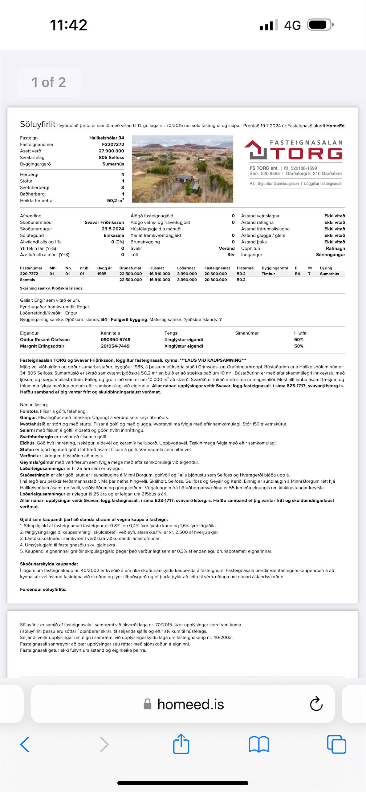 Fyrir liggur kauptilboð í fasteignina að Hallkelshólum 34, fasteignanúmer F2207372, landeignanúmer L168496. Fyrir liggur að Grímsnes- og Grafningshreppur hefur forkaupsrétt að fasteigninni.